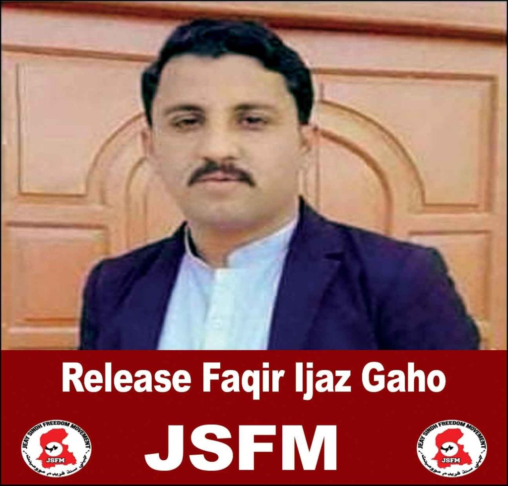 The central leadership of Jeay Sindh Freedom Movement JSFM has further said that On the one hand national activist Sohail Raza Bhatti who has been forcibly disappeared for more than 8 years, who is still locked up in a state torture cell, Allah Wadhayo Mahar who has been missing for 9 years, and is enduring state torture. Similarly, Faqir Ijaz Gahu, Ayub Kandharo, Pathan Khan Zuhrani, Arsalan Shah, Naveed Mirani, Mohan Meghwar and many national activists who love Sindh are still imprisoned in the torture cells of this fascist state.