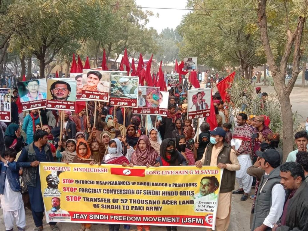 They called for the safe release of forcibly disappeared political and peaceful activists from Sindh, Balochistan and Pashtunistan, according to a JSFM press release.