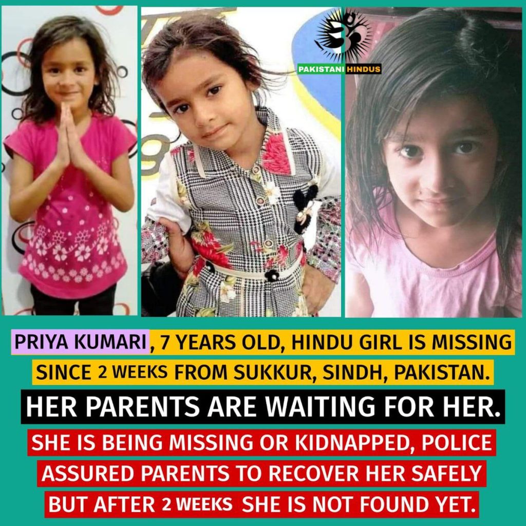 We appeal to the human rights organizations to please play their role for the recovery of Priya Kumari.